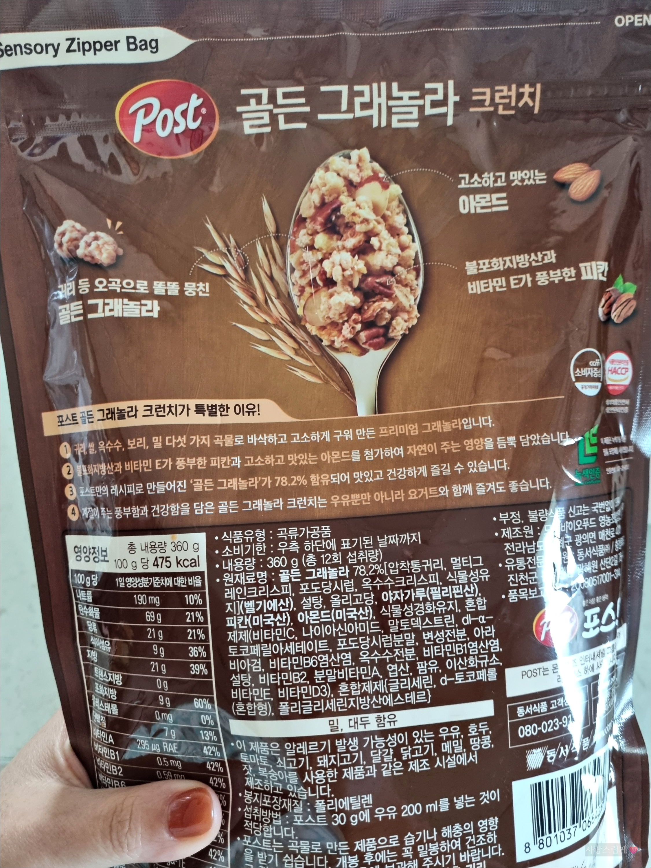 아침 식사를 간단하면서도 건강하게 해결하고 싶은 분, 혹은 씹는 맛이 살아있는 고소한 시리얼을 찾는 분이라면 견과류가 풍부한 포스트 프리미엄 골든 그래놀라 크런치를 괜찮더라고요.