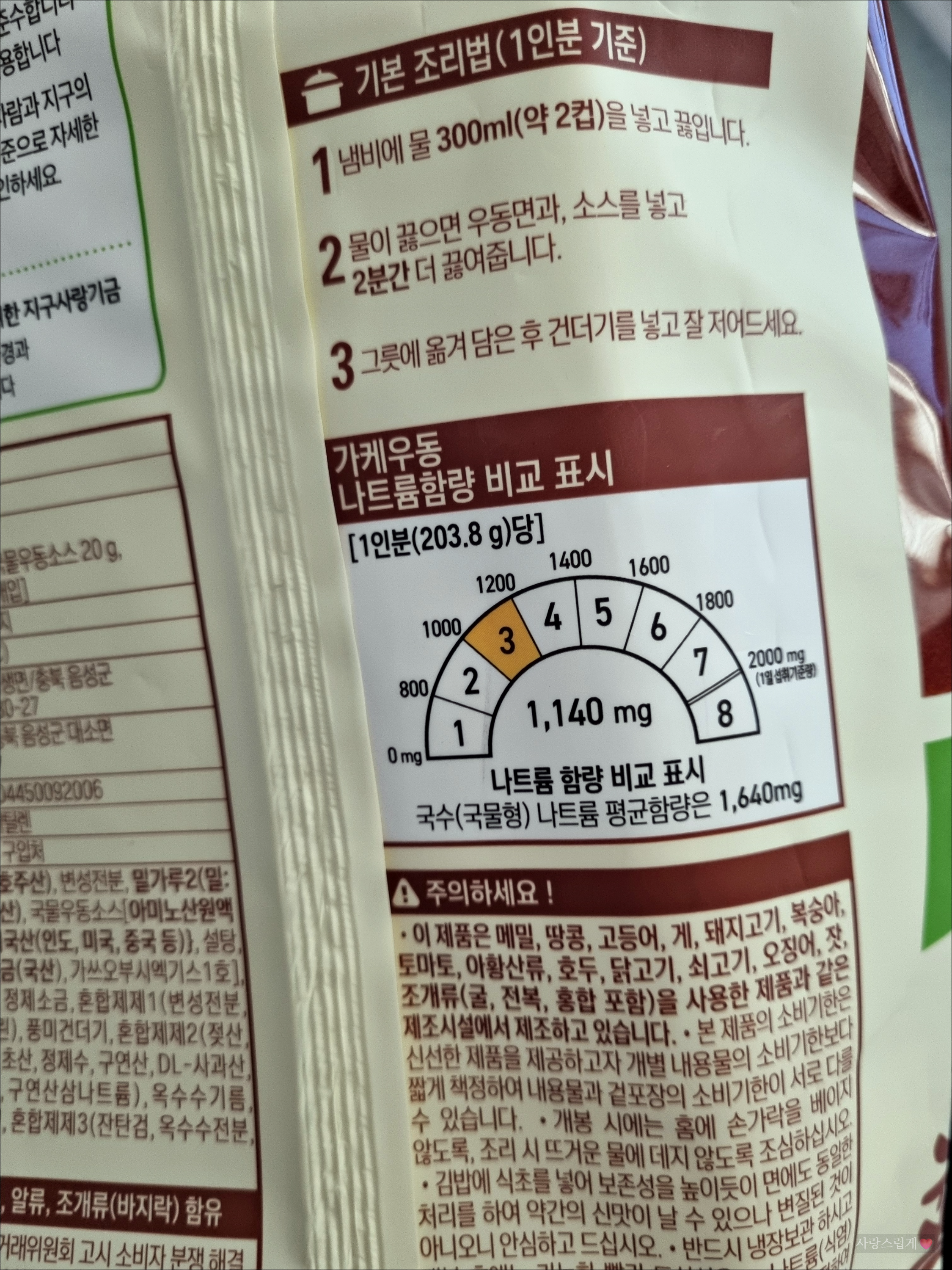 총 2인분이 들어있는데 1인분씩 개별포장되어있어서 혼자 드신다면 한 번 먹고 보관해놨다가 또 해먹기에도 편해요.