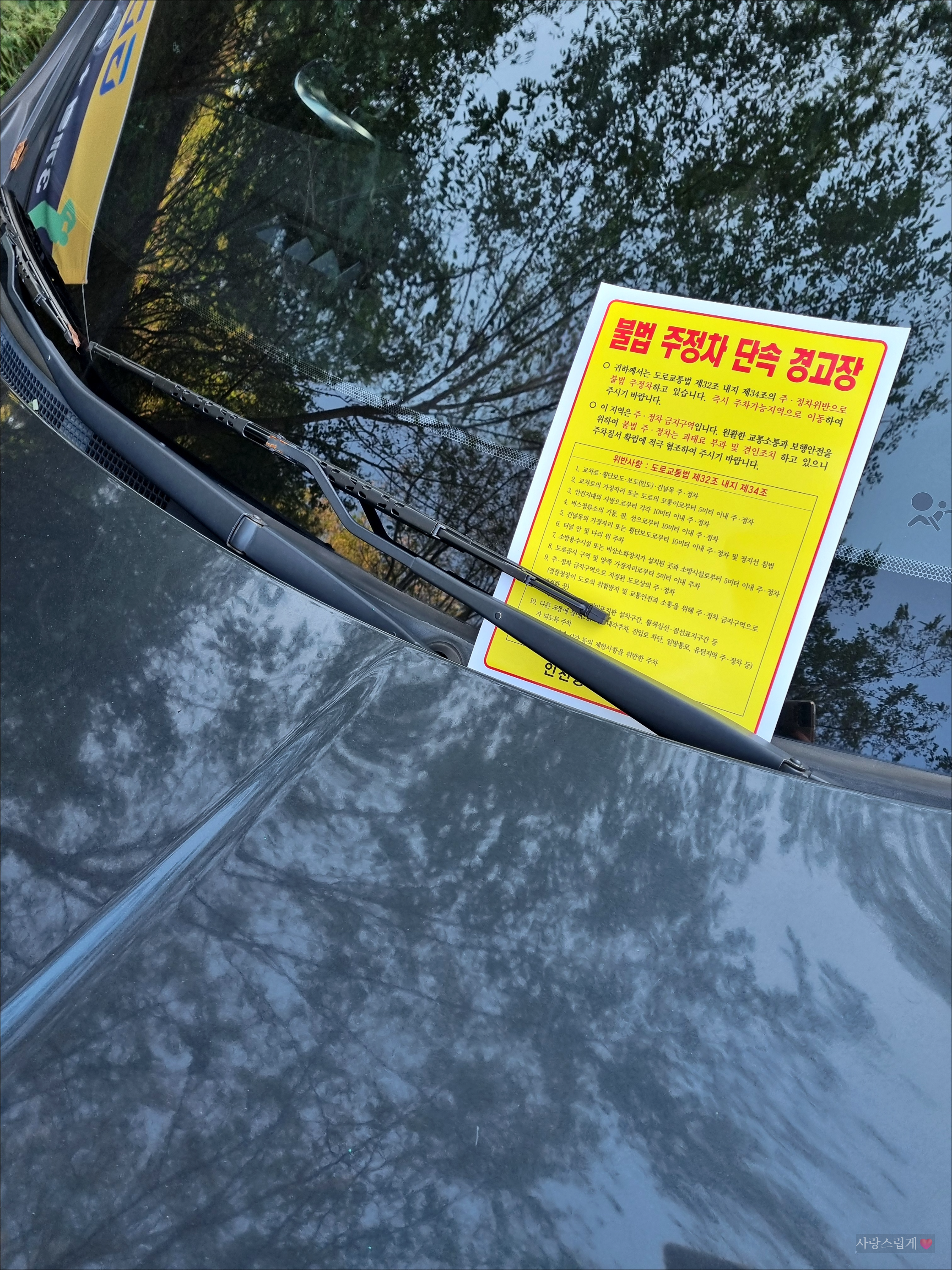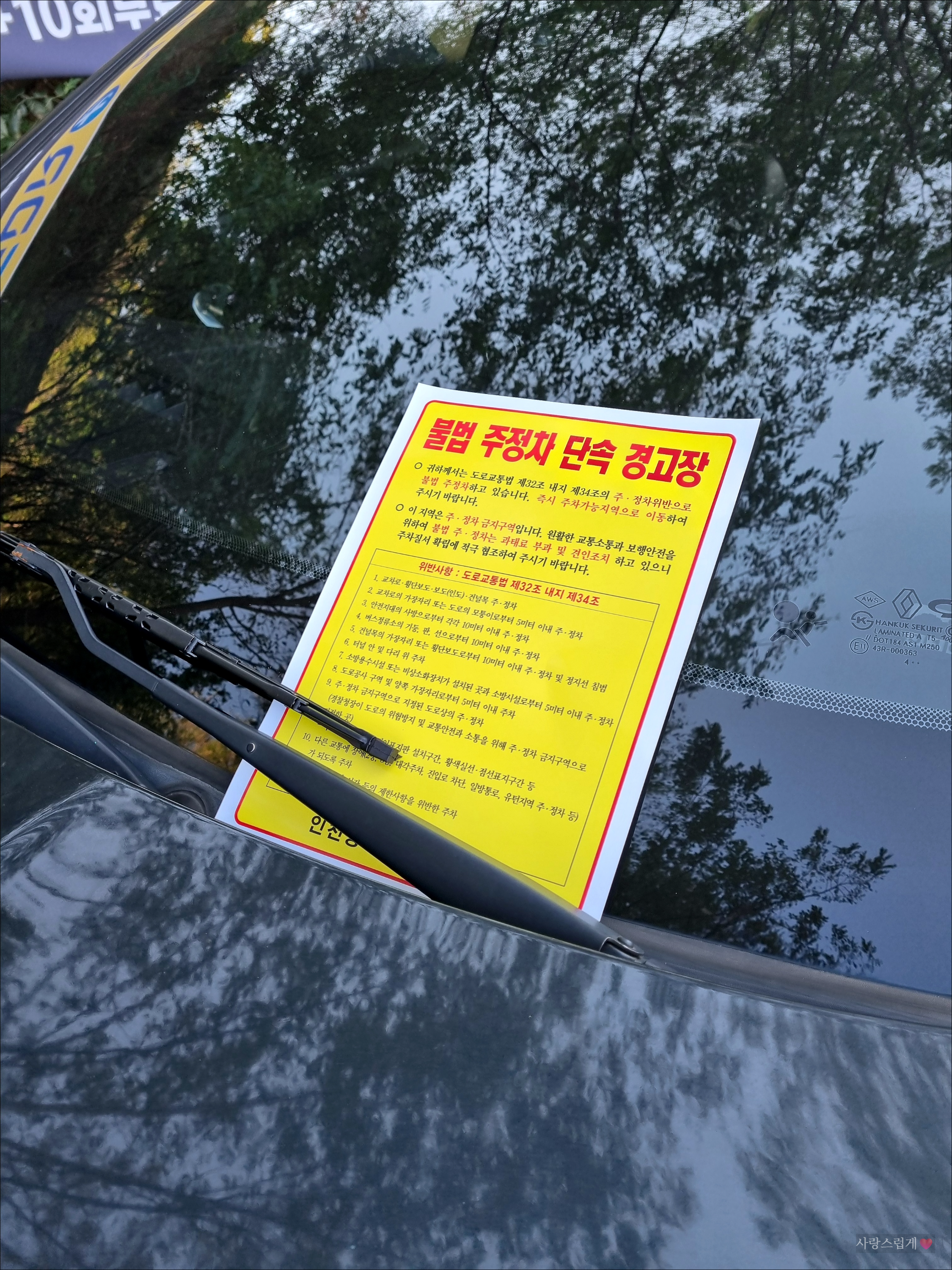 오늘 일 마치고 주차된 차로 돌아와 보니, 앞유리에 노란색 종이가 하나 붙어 있더라고요. 자세히 보니 ‘불법 주정차 단속 경고장’이더라고요. 처음엔 깜짝 놀랐는데, 내용을 읽어보니 다행히 즉시 과태료가 부과된 건 아니고, 일종의 ‘계도(경고)’ 단계더라고요.