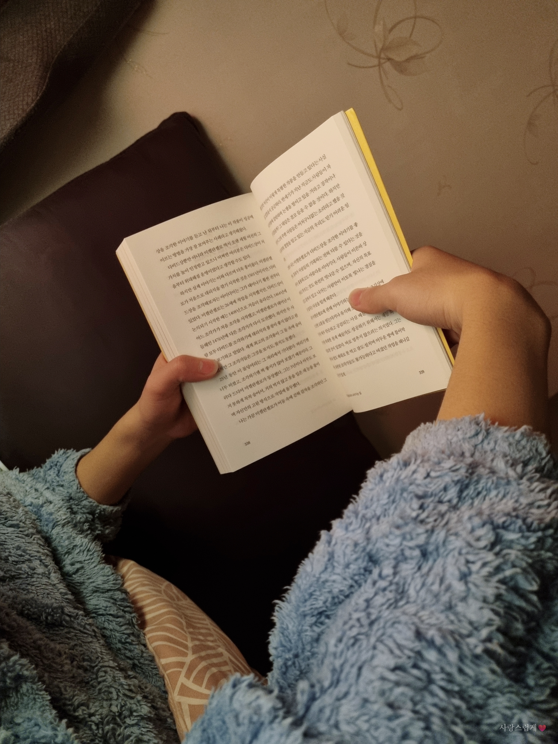 시계 초침 소리가 유난히 크게 들리는 밤. 거실 불을 모두 끄고, 방에서 새어 나오는 노란빛 아래, 아이는 두꺼운 겨울 잠옷에 파묻힌 채 이불 덮고 책장을 넘기고 있었어요. 작은 손가락 끝에 닿는 종이의 질감, 숨소리마저 조심스러운 그 고요함 속에서 아이는 세상 그 무엇과도 단절된 듯 책에 완전히 몰입해 있다. 그 모습이 참 예뻐서, 너무나 예뻐서 한참을 옆에 누워서 바라봤답니다. 이 평화로운 풍경 앞에서 나는 엄마로서의 잔소리를 잠시 참고 말이죠.